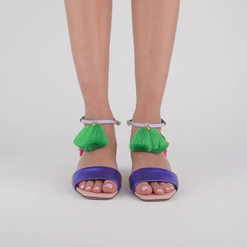 of art", these sandals are the perfect choice for adding colour and fun to your look every season. An embellished bird at the back is offset with frills and a tassel at the ankle, with a smooth leather Upper and signature block heel.